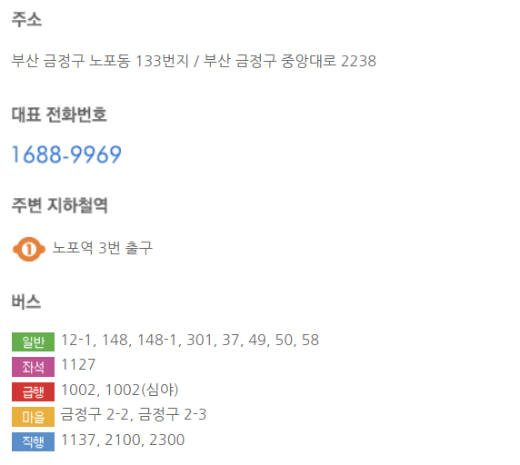 - 주소: 부산 금정구 중앙대로 2239 (노포동)