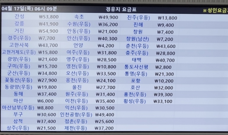 🚩 노선별 경유지에 따라 요금이 달라질 수 있습니다.