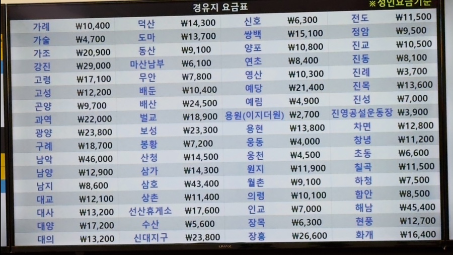 🚩 노선별 경유지에 따라 요금이 달라질 수 있습니다.